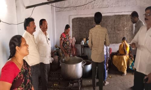 ఇ నివాస్ న్యూస్ - ఆంధ్రప్రదేశ్ / నంద్యాల / ఆత్మకూరు : ఆత్మకూరు పట్టణంలోని, ప్రభుత్వ జిల్లా పరిషత్ హైస్కూల్ లో నంద్యాల జిల్లా ఎస్సీ ఎస్టీ విజిలెన్స్ అండ్ మానిటరింగ్ కమిటీ మెంబర్ లింగాల నాగరాజు మధ్యాహ్న భోజన పథకాన్ని పరిశీలించి, వంటగది చుట్టూ పరిసర ప్రాంతాలు శుభ్రంగా ఉంచుకోవాలని హెచ్చరించారు. ఈ సందర్భంగా డివిఎంసి మెంబర్ లింగాల. నాగరాజు మాట్లాడుతూ పిల్లలకు మెనూ ప్రకారం భోజనం నాణ్యతగా వండి పెట్టాలన్నారు. తాజా కూరగాయలు ఎప్పటికప్పుడు తెచ్చి ఉండాలన్నారు. మంచి ఉద్దేశంతో ప్రభుత్వం పిల్లలకు సన్న బియ్యం ఇవ్వడం జరుగుతుందని, పిల్లలను బాగా చూసుకోవాలని అన్నారు. వంటగది చుట్టూ పరిసర ప్రాంతాలు బాగాలేవని వెంటనే వంట గది చుట్టూ మురుగునీరు లేకుండా చూసుకోవాలని, దానివల్ల పిల్లలకు వ్యాధులు వచ్చే ప్రమాదం ఉందని ఆయన హెచ్చరించారు.లేదంటే జిల్లా కలెక్టర్ కి ఫిర్యాదు చేస్తారని ఆయన హెచ్చరించారు.